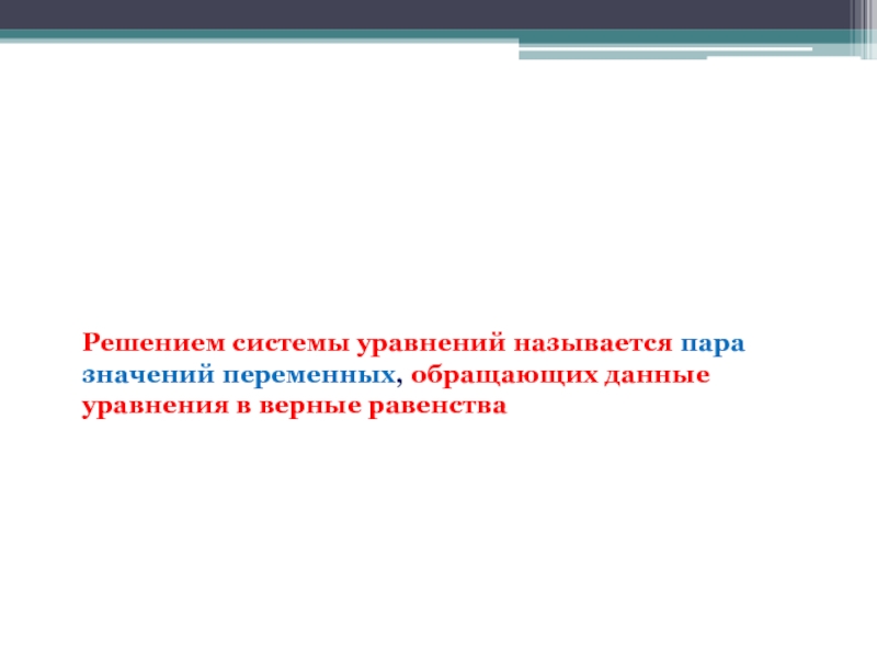 Что является решением системы линейного уравнения с двумя переменными? Решением системы уравнений называется пара значений переменных, обращающих