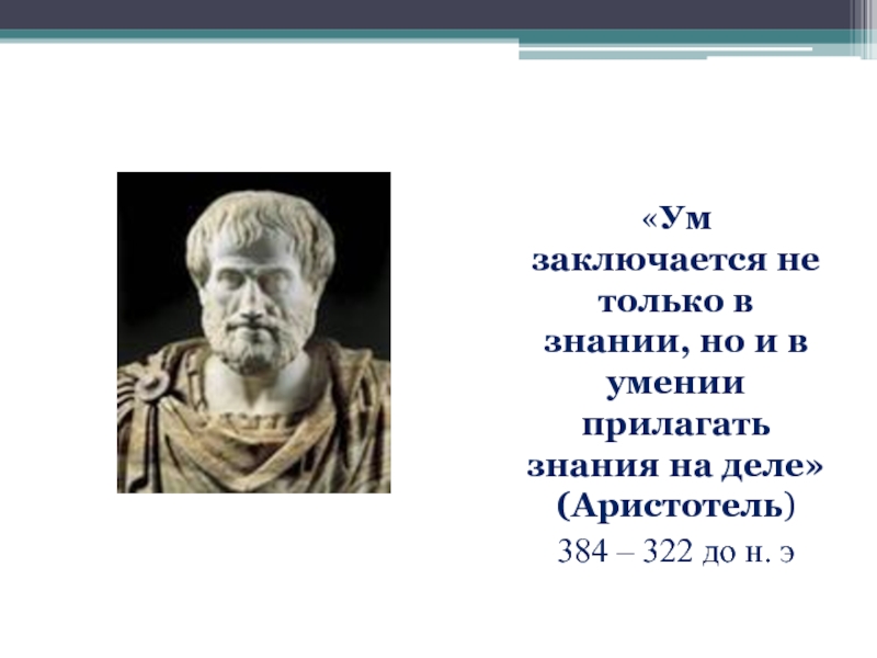 «Ум заключается не только в знании, но и в умении прилагать знания на деле» (Аристотель)384 – 322