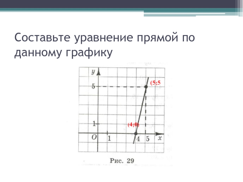Составьте уравнение прямой по данному графику(4;0)(5;5