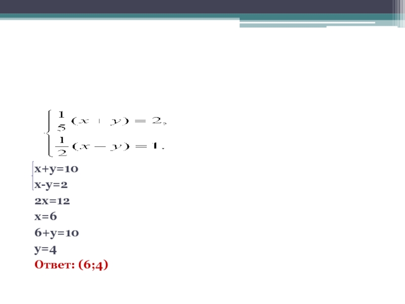 Ответ 2 группыx+y=10x-y=22x=12x=66+y=10y=4Ответ: (6;4)