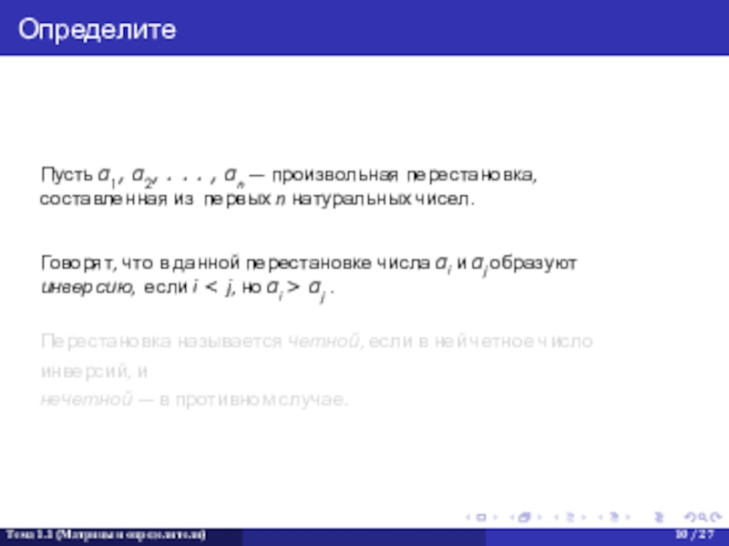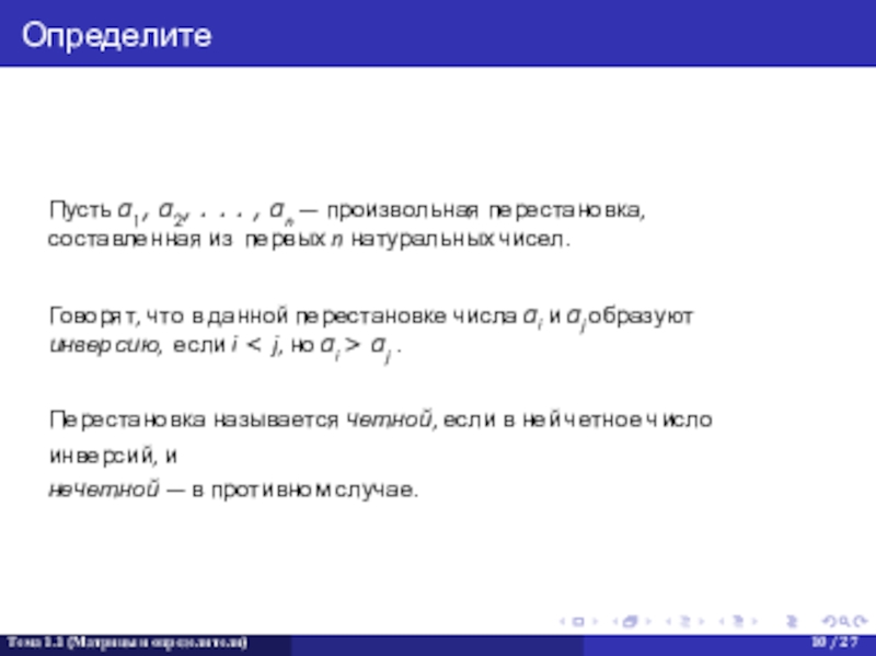 Говорят, что в данной перестановке числа αi и αj образуют инверсию, если i < j, но αi > αj .