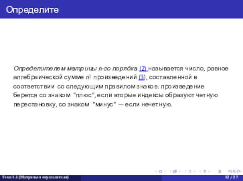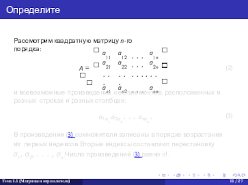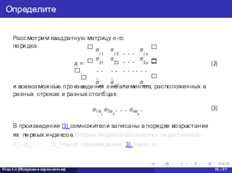 В произведении (3) сомножители записаны в порядке возрастания их первых индексов.Вторые индексы составляют перестановку