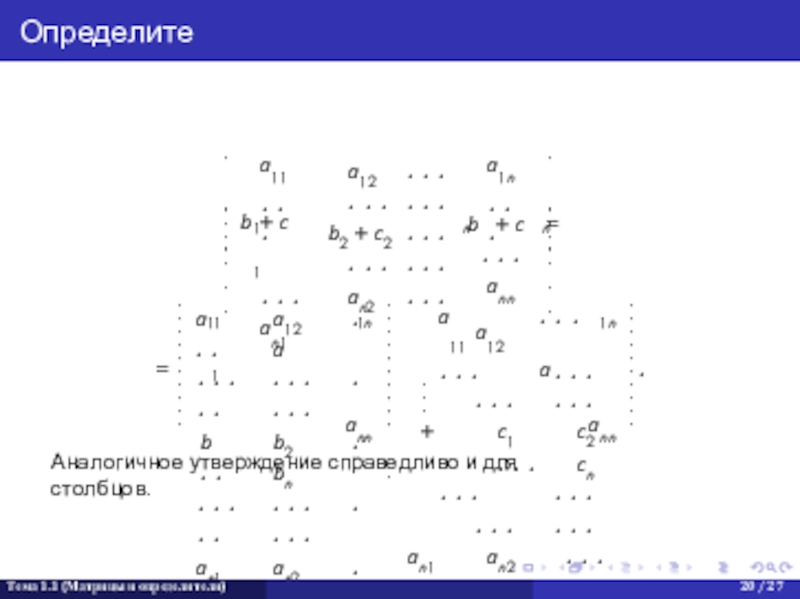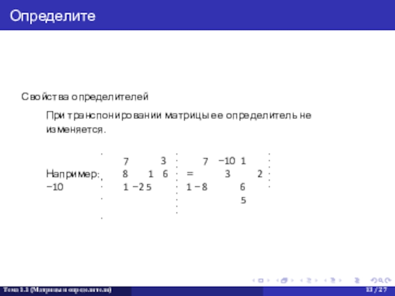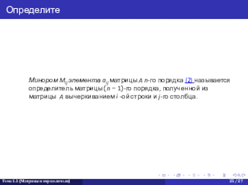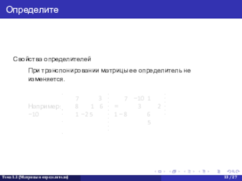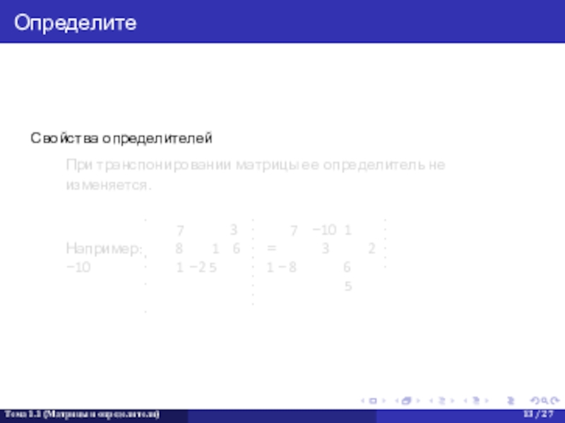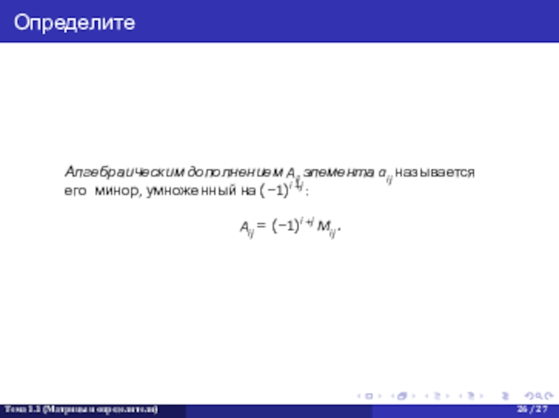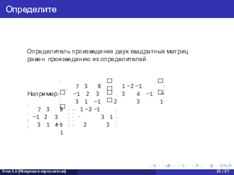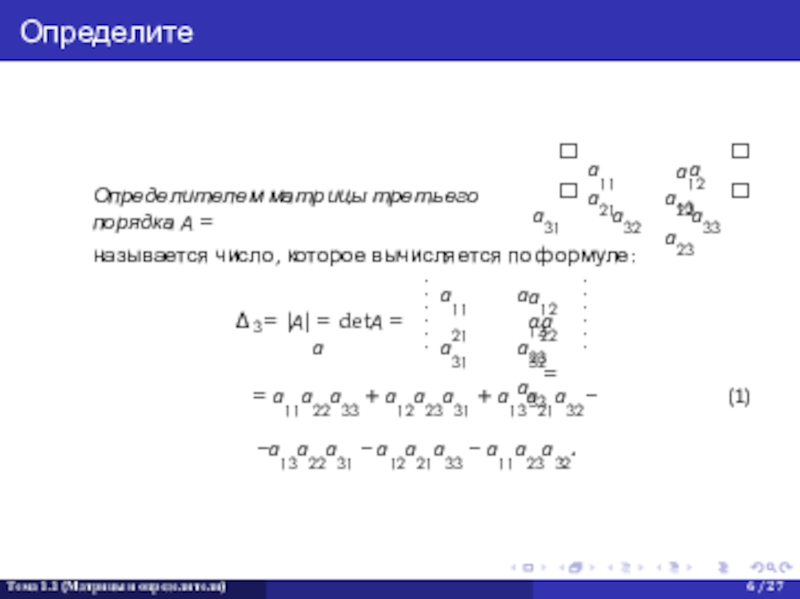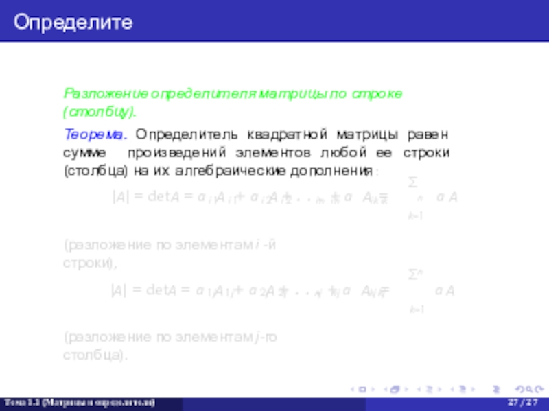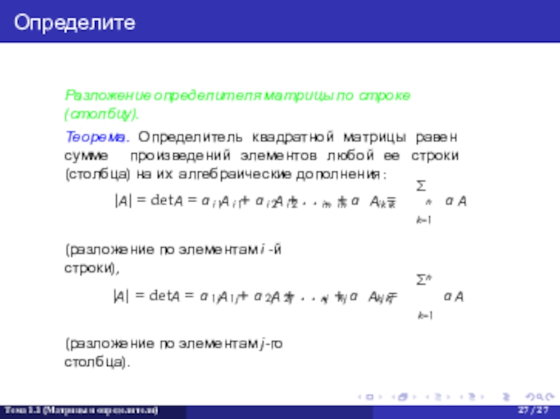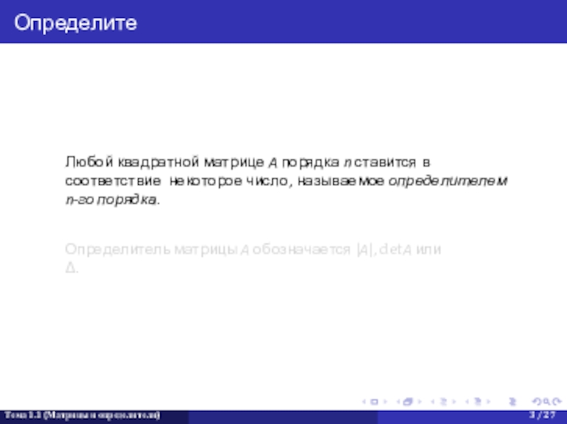 Определитель матрицы A обозначается |A|, detA или ∆.