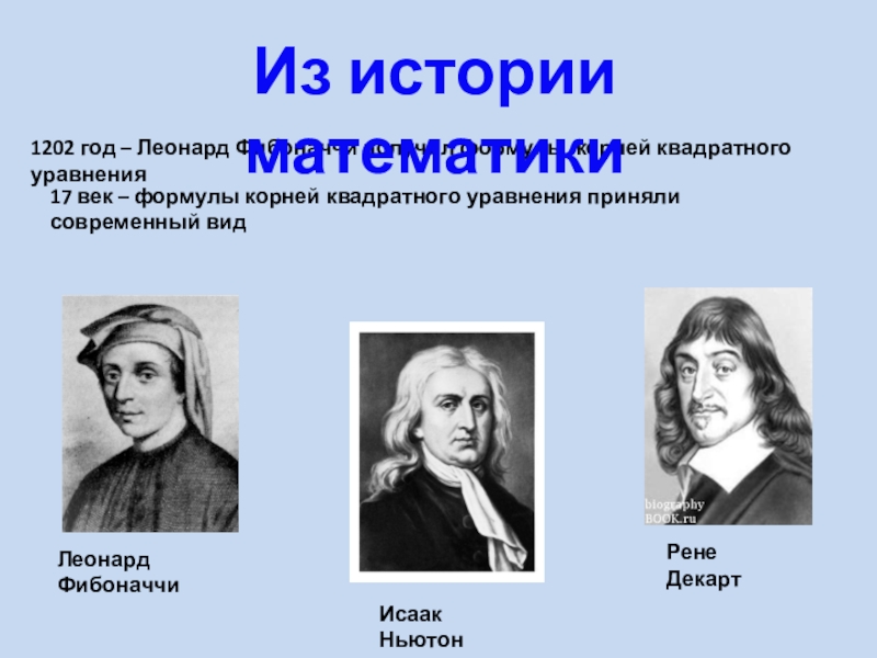 17 век – формулы корней квадратного уравнения приняли современный вид
