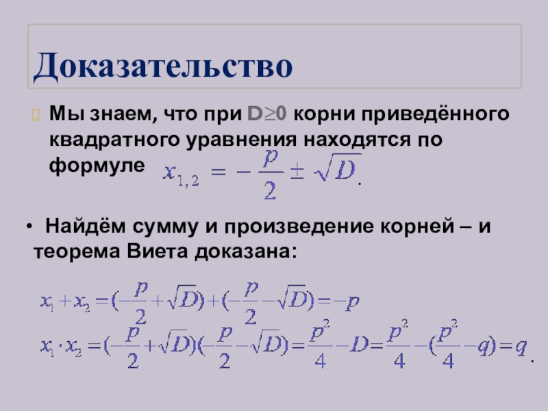 Найдём сумму и произведение корней – и теорема Виета доказана: