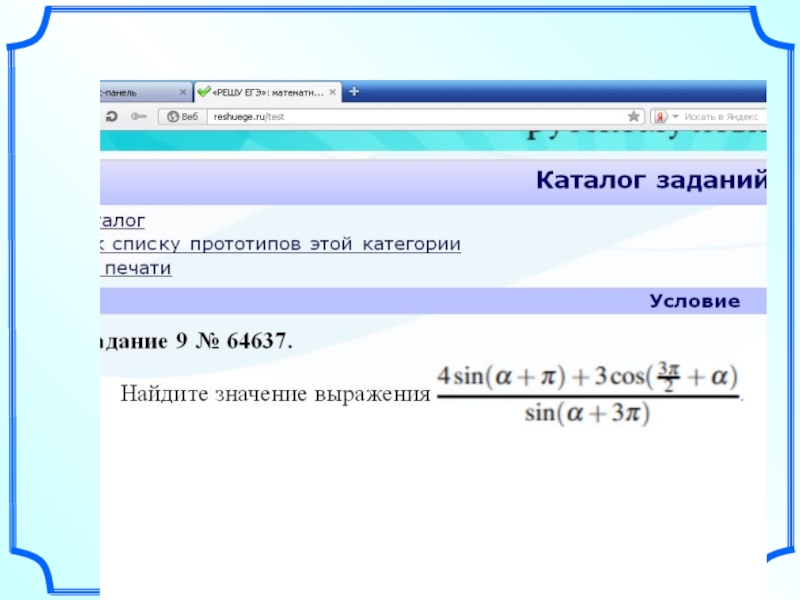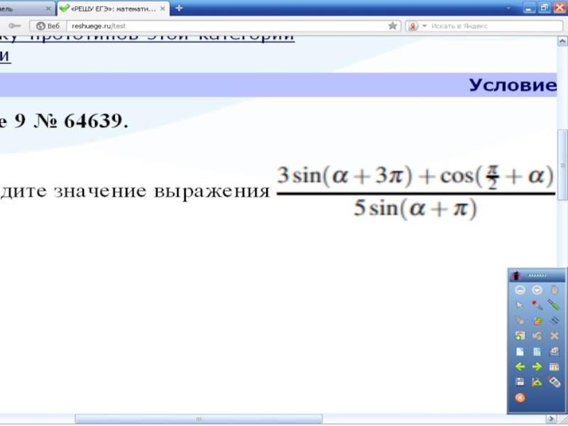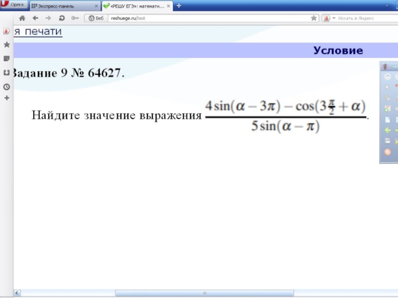 Задание 5. Найдите значение выражения sin(7π /2 – α), если sinα = 0,8 и α € ( π/2; π)