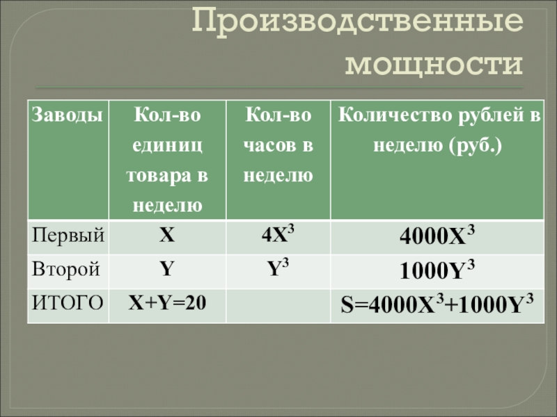 В результате, если рабочие на заводе, расположенном в первом городе, трудятся суммарно 4t3 часов в неделю, то за эту неделю они производят t приборов; если рабочие на заводе, расположенном во втором городе, трудятся суммарно t3 часов в неделю, они производят t приборов.