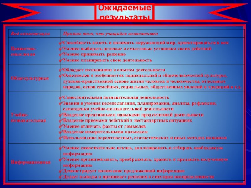 чевых компетенциях, как характеристики нового