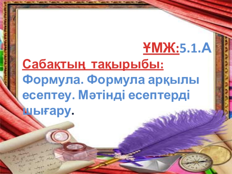 Презентация, доклад на тему Формула. Формула арқылы есептеу. Мәтінді есептерді шығару.