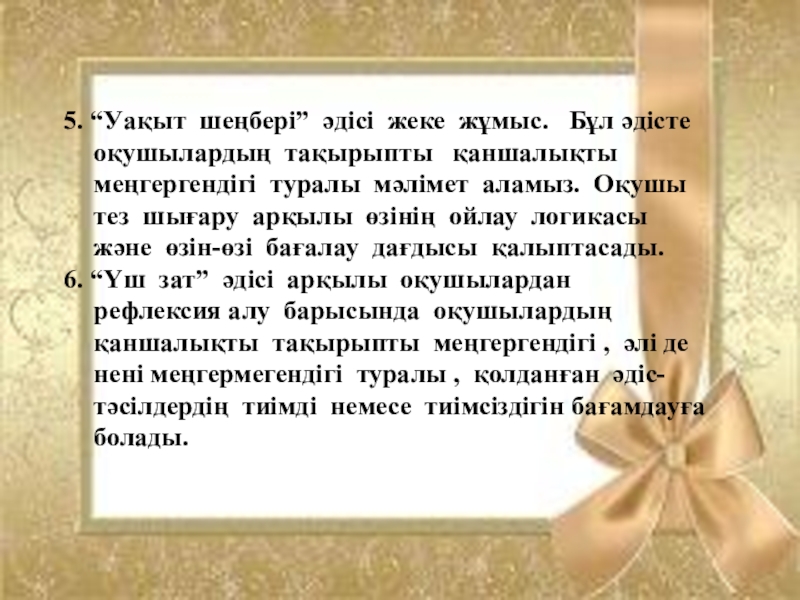 Слайд 55. “Уақыт шеңбері” әдісі жеке жұмыс. Бұл әдісте оқушылардың тақырыпты