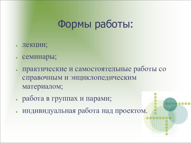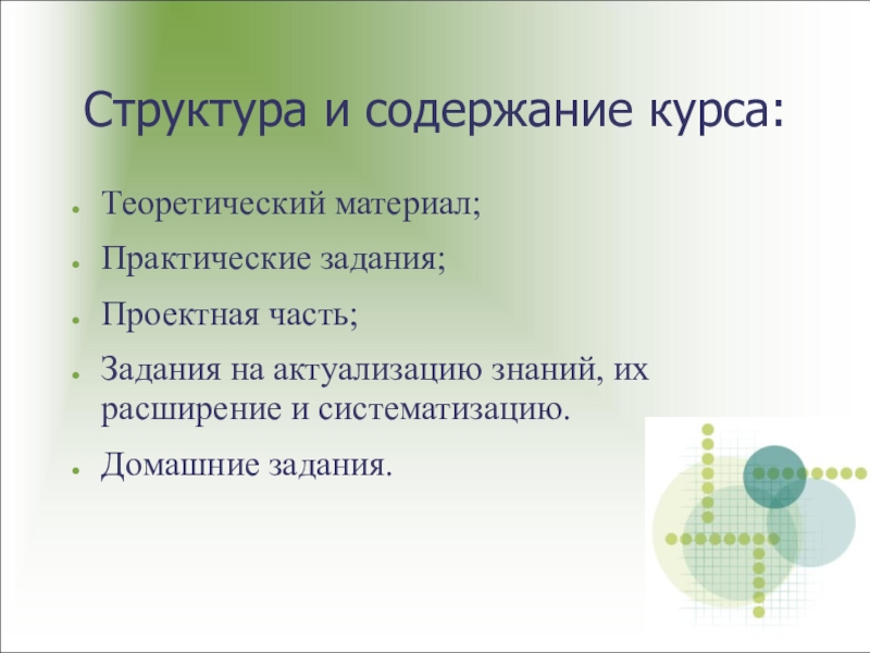 консультация по подготовке проектов по выбранным темам курсовой работы.