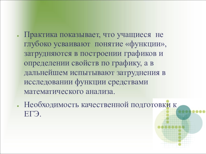Слайд 6Практика показывает, что учащиеся не глубоко усваивают понятие «функции», затрудняются в