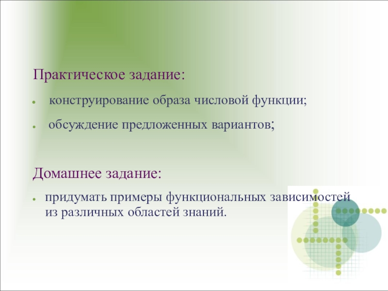 Работа в микрогруппах по подготовке проектов сообщений о примерах функциональной