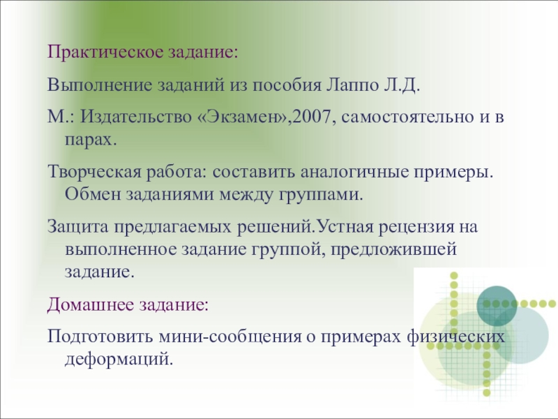 Защита предлагаемых решений.Устная рецензия на выполненное задание группой, предложившей задание.