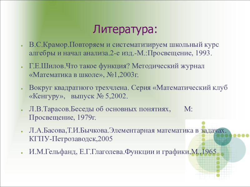 В.С.Крамор.Повторяем и систематизируем школьный курс алгебры и начал анализа.2-е изд.-М.:Просвещение, 1993.
