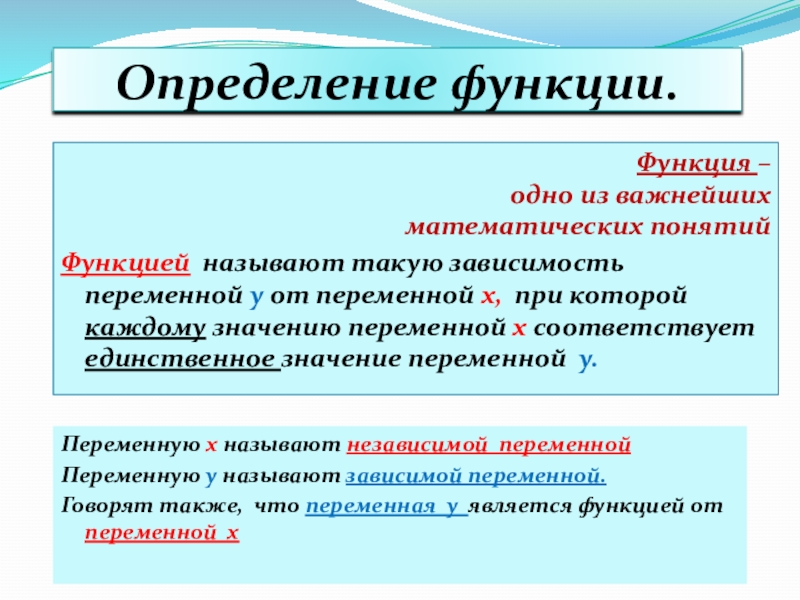 Переменную x называют независимой переменной
