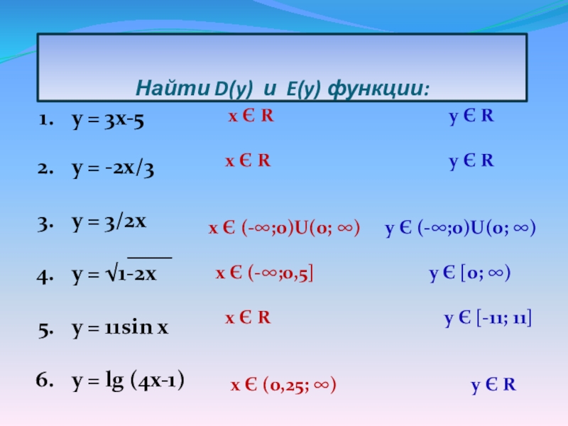 у Є (-∞;0)U(0; ∞)