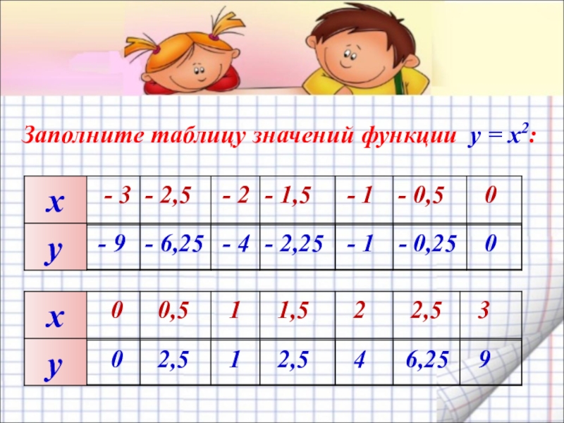 Принадлежит ли графику функции у = х2 точка: