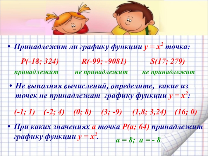 Не выполняя вычислений, определите, какие из точек не принадлежат графику функции у = х2: