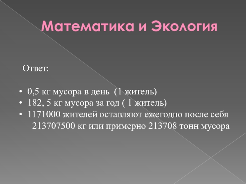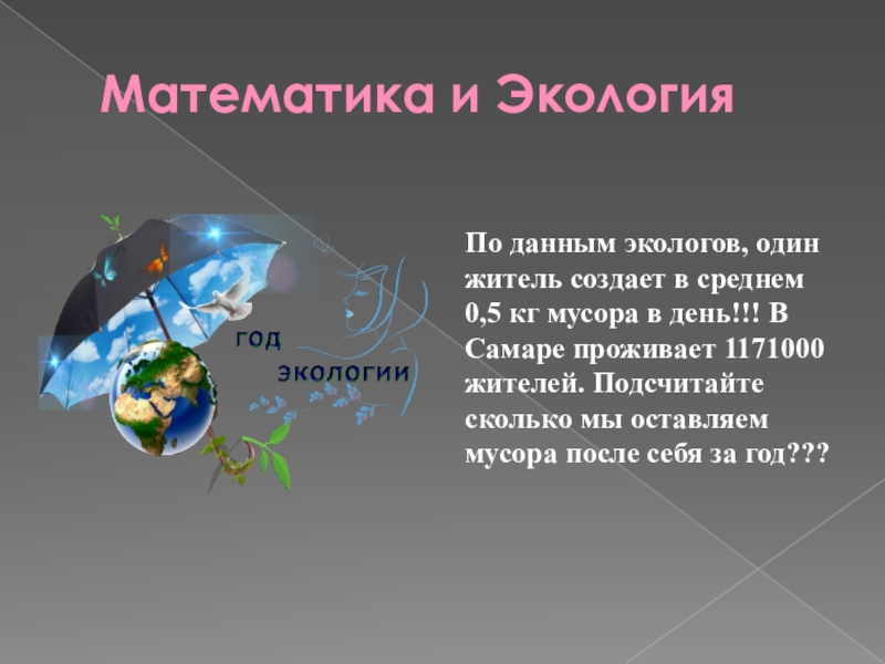 кг мусора в день!!! В Самаре проживает 1171000 жителей. Подсчитайте сколько мы оставляем мусора после себя за год???