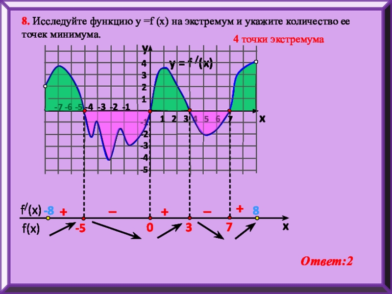 8. Исследуйте функцию у =f (x) на экстремум и укажите количество ее точек минимума.