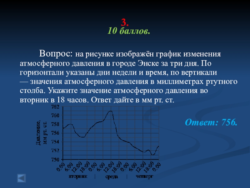 3.  10 баллов.     Вопрос: на рисунке изображён график изменения атмосферного давления