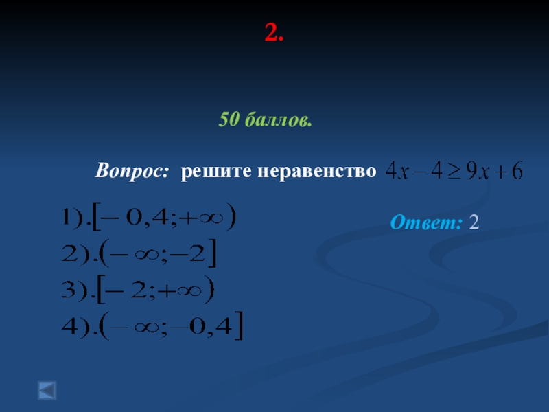 2.  50 баллов.    Вопрос: решите неравенство  Ответ: 2