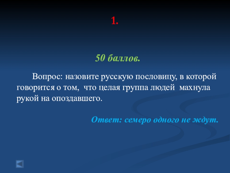 1.  50 баллов.    Вопрос: назовите русскую пословицу, в которой говорится о том,