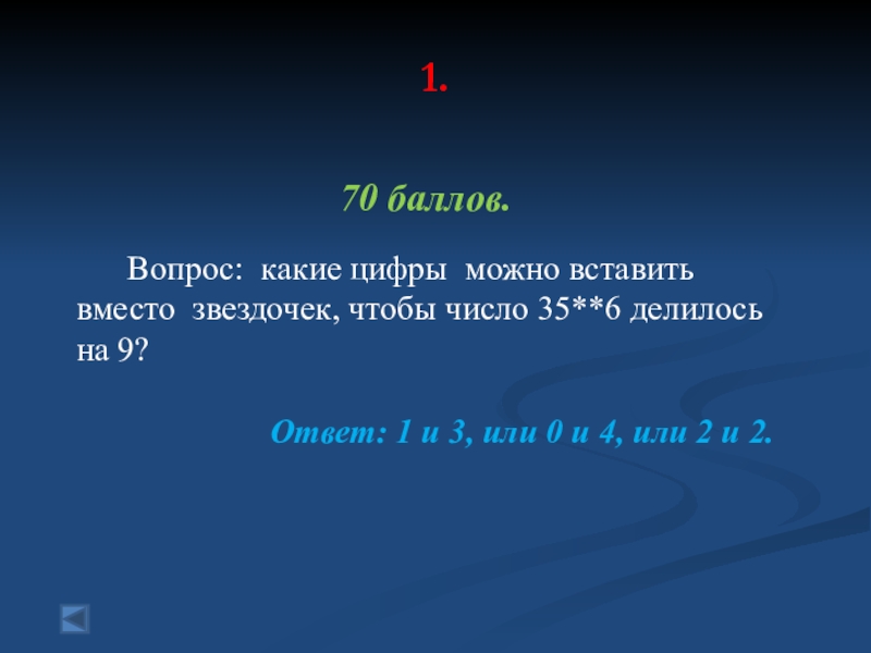 1.  70 баллов.    Вопрос: какие цифры можно вставить вместо звездочек, чтобы число