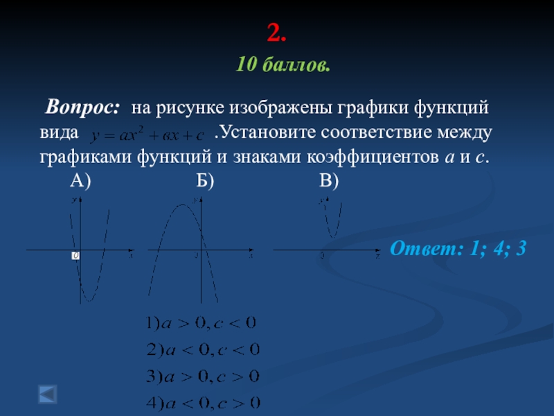 2. 10 баллов. Вопрос: на рисунке изображены графики функций вида