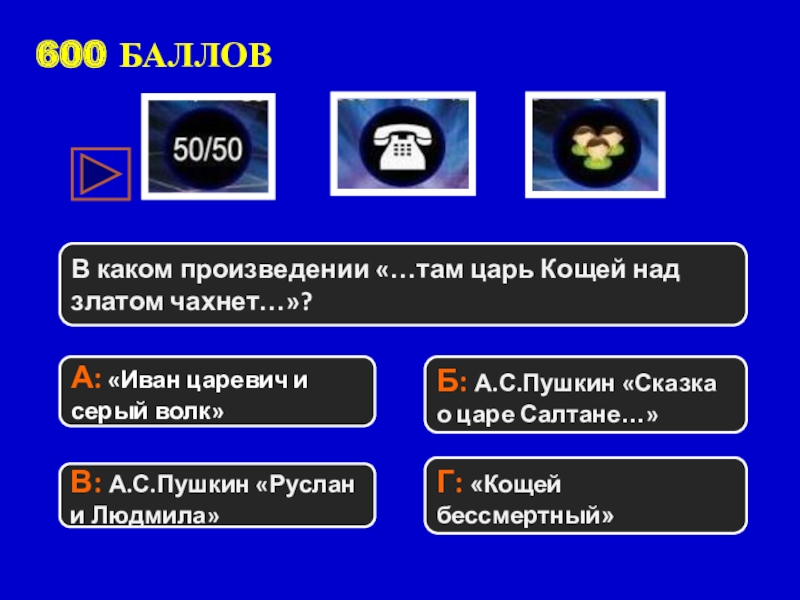 А: А.С.Пушкин «Сказка о царе Салтане…»