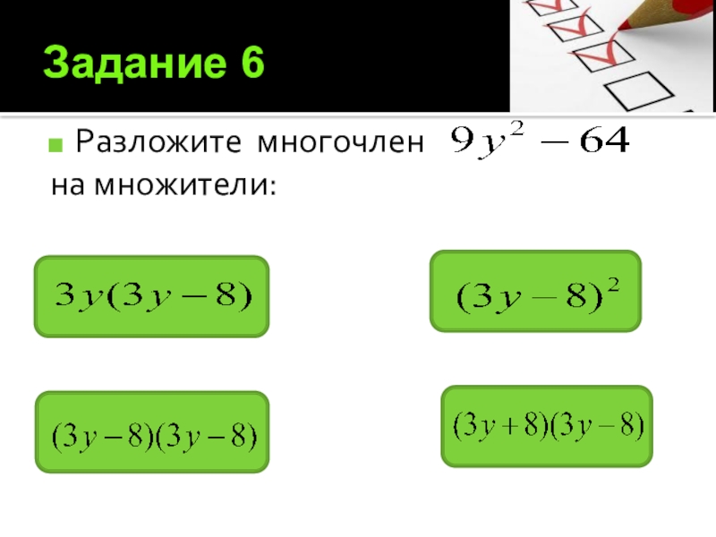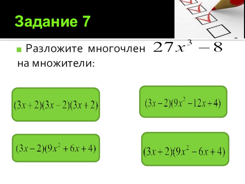 2) Воспользуемся формулой произведения разности на сумму, получим: (3x-7y)(3x+7y)=(3x)2-(7y)2=9x2-49y2