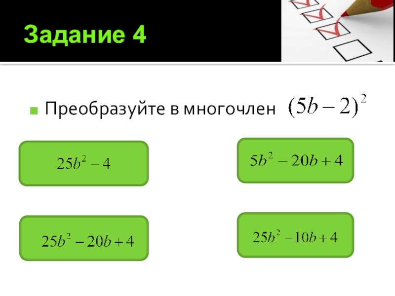 3) Представим в виде многочлена произведение (5a2 - b3)(5a2 + b3)