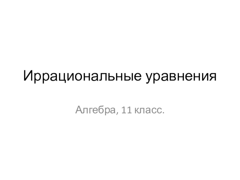 Презентация, доклад на тему Иррациональные уравнения. Алгебра, 11 класс