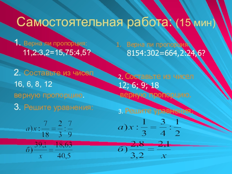 верную пропорцию.