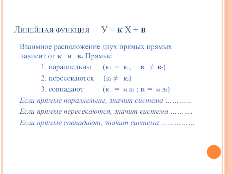 1. параллельны (к1 = к2, в1 ≠ в2)