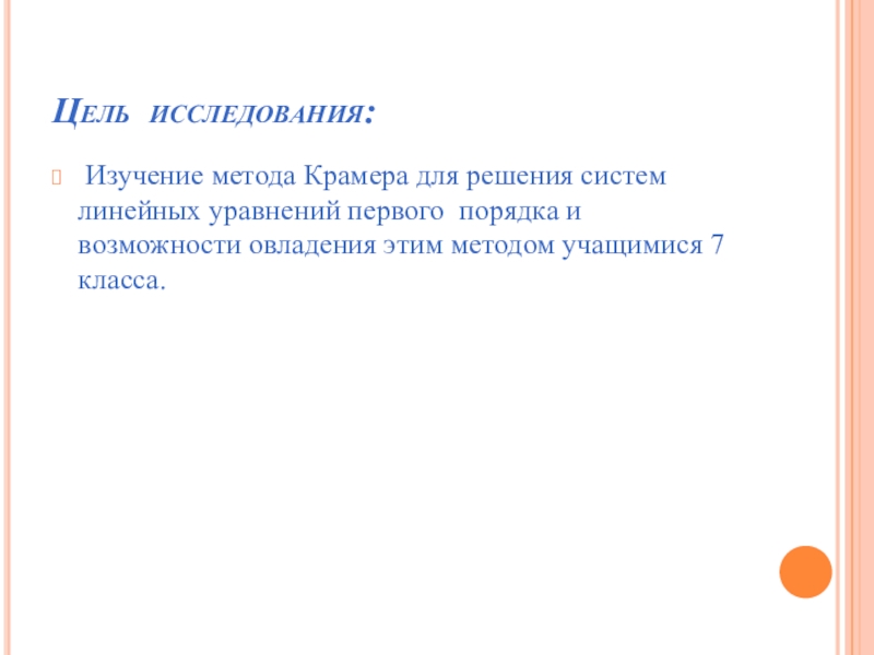 Изучение метода Крамера для решения систем линейных уравнений первого порядка