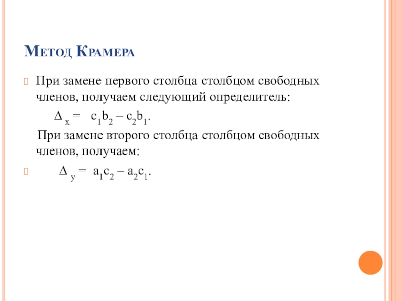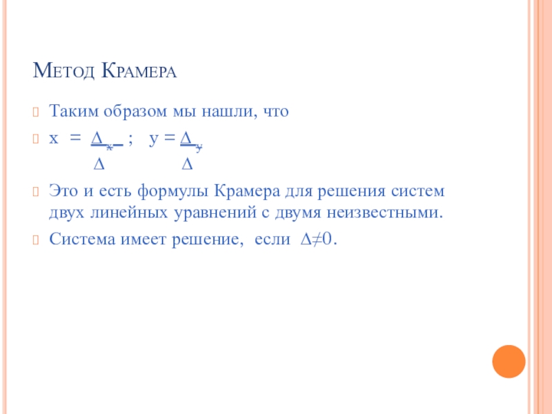Это и есть формулы Крамера для решения систем двух линейных уравнений с двумя неизвестными.