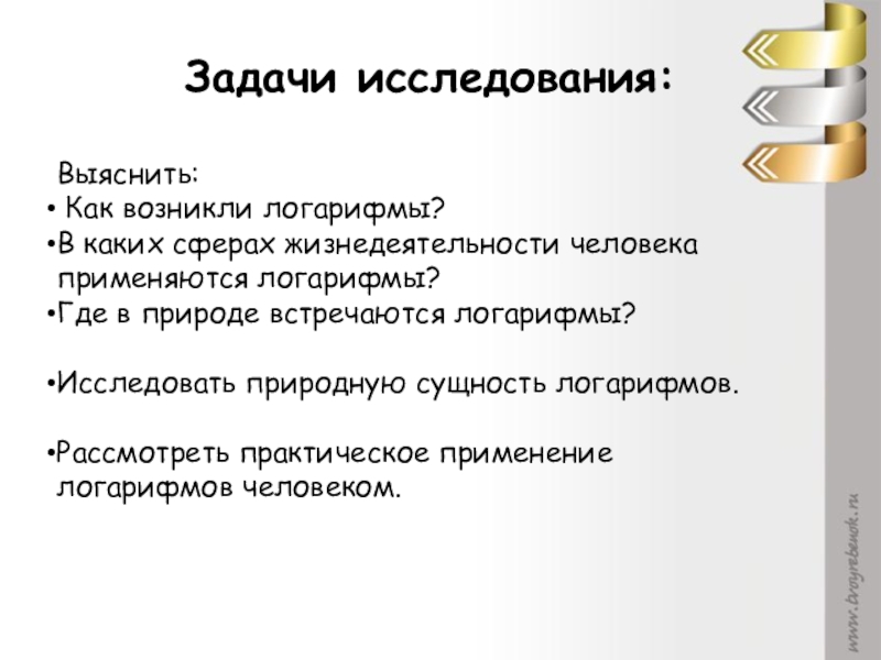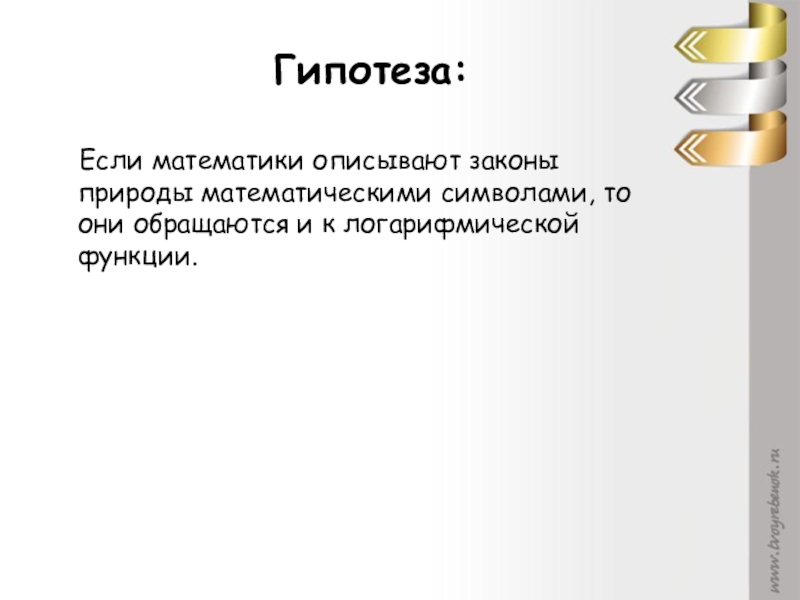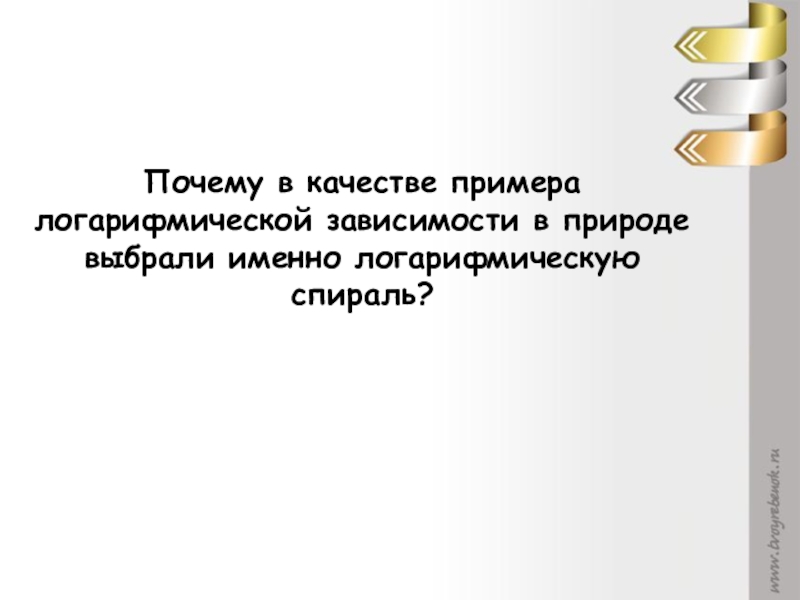 Слайд 20Почему в качестве примера логарифмической зависимости в природе выбрали именно логарифмическую