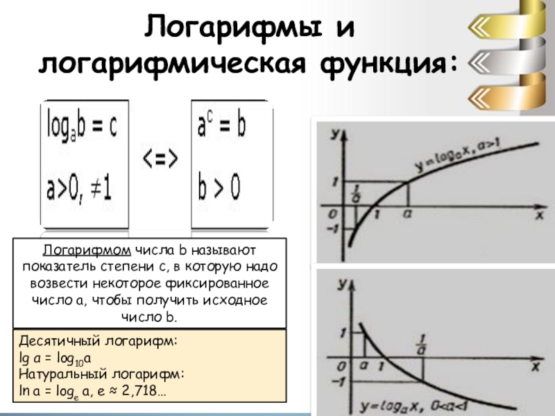 Слайд 1Логарифмы и логарифмическая функция в природе и технике