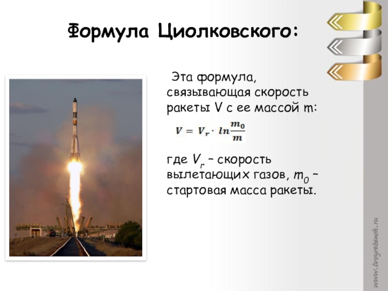 где Vr – скорость вылетающих газов, m0 – стартовая масса ракеты.