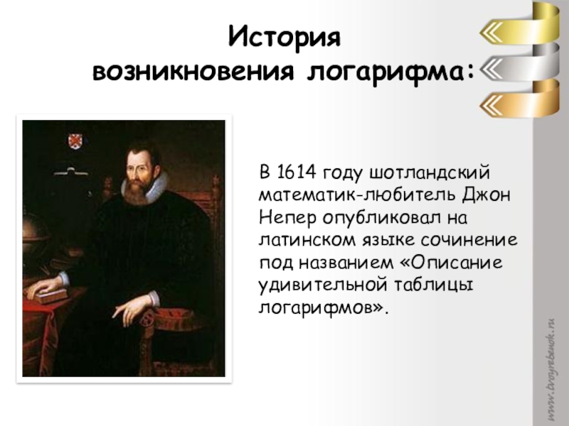 В 1614 году шотландский математик-любитель Джон Непер опубликовал на