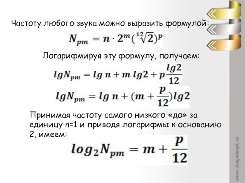 низкого «до» за единицу n=1 и приводя логарифмы к основанию 2, имеем: