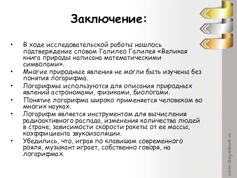 Многие природные явления не могли быть изучены без понятия логарифма.
