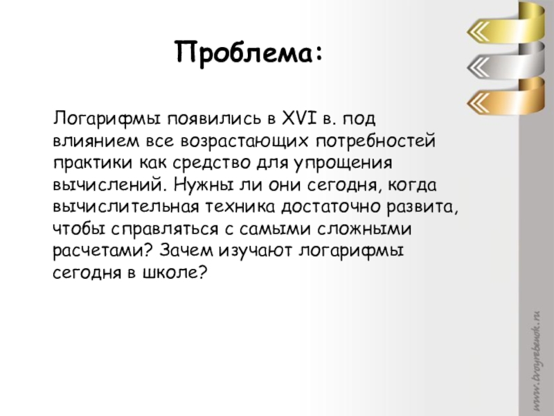 возрастающих потребностей практики как средство для упрощения вычислений. Нужны ли они сегодня, когда вычислительная техника достаточно развита, чтобы справляться с самыми сложными расчетами? Зачем изучают логарифмы сегодня в школе?