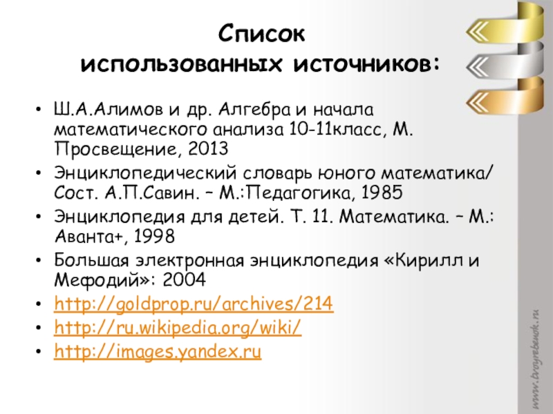 Энциклопедический словарь юного математика/ Сост. А.П.Савин. – М.:Педагогика, 1985