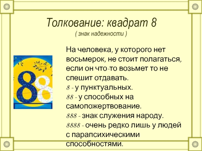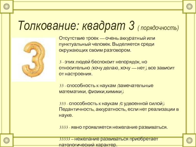 Слайд 20Толкование: квадрат 3 ( порядочность)