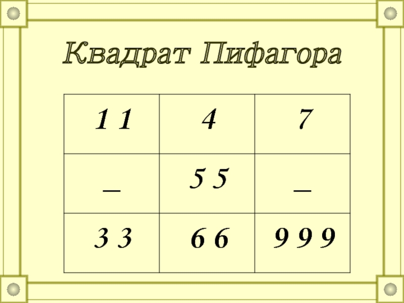 А теперь обратимся к квадрату Пифагора: в центр каждой из