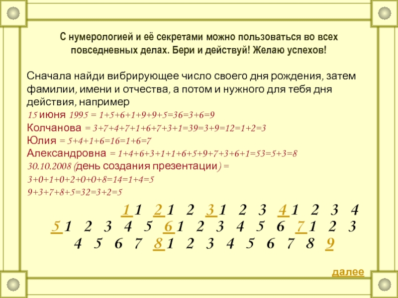 Слайд 5С нумерологией и её секретами можно пользоваться во всех повседневных делах.