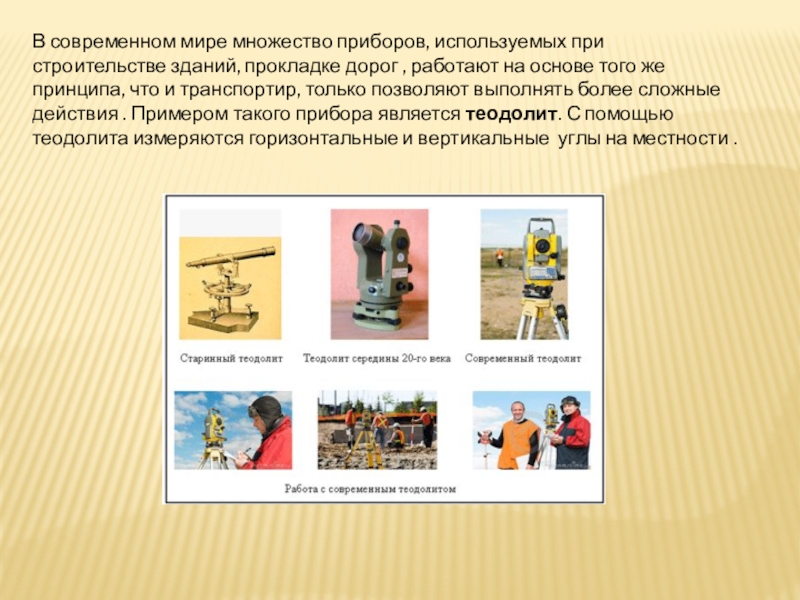 Во время работы с прибором нужен был отвес. Прибор располагали на поверхности, после этого обозначали перпендикуляр отвесом. Разница между отвесом и рисунком помогала узнать угол наклона поверхности.